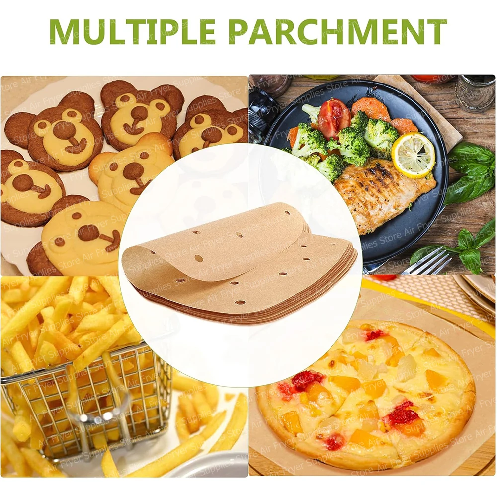 🍟 MULTI-USAGE – Peut également servir de feuille pour gâteaux ou vapeur. Idéale pour toute cuisson nécessitant un papier antiadhésif et sûr à haute température.