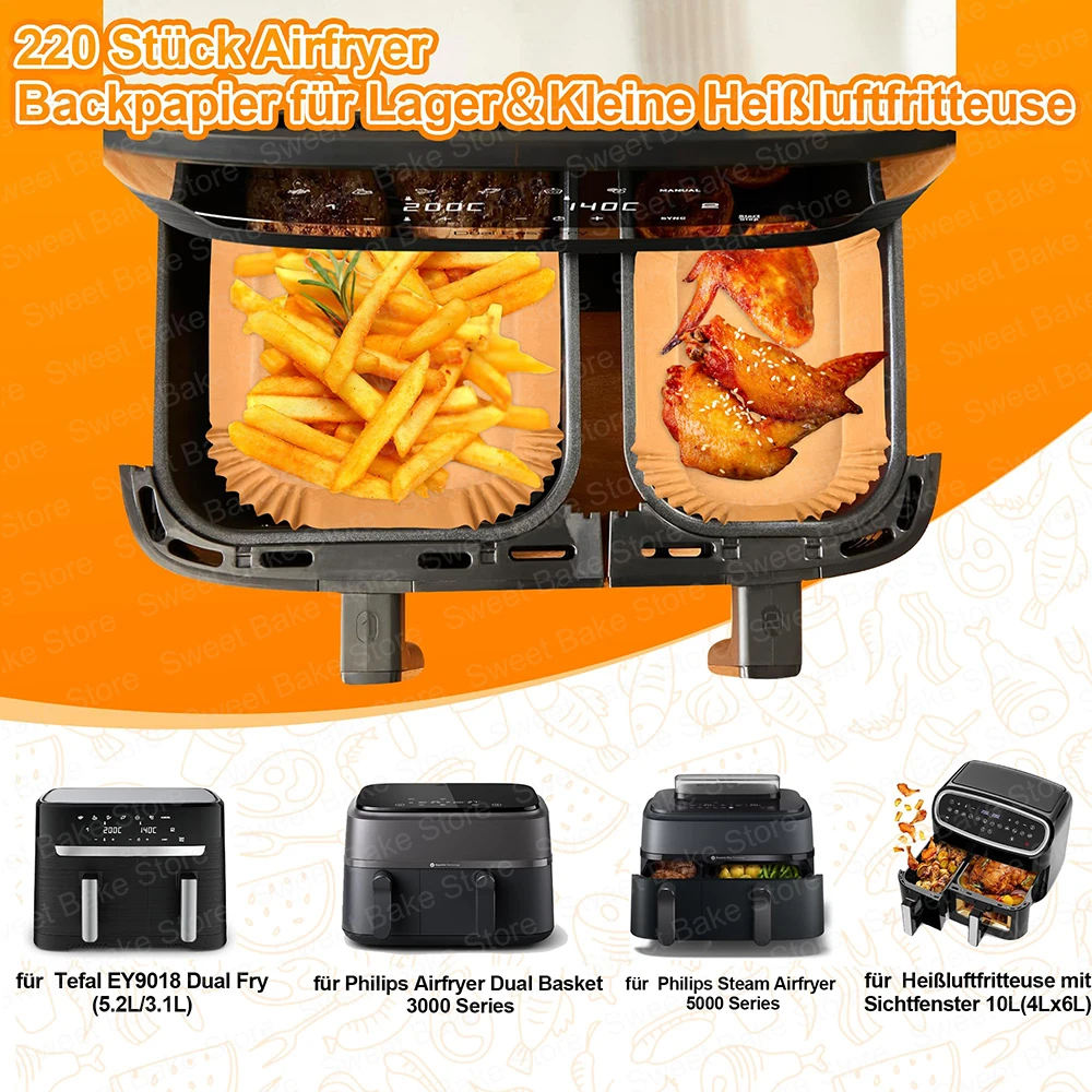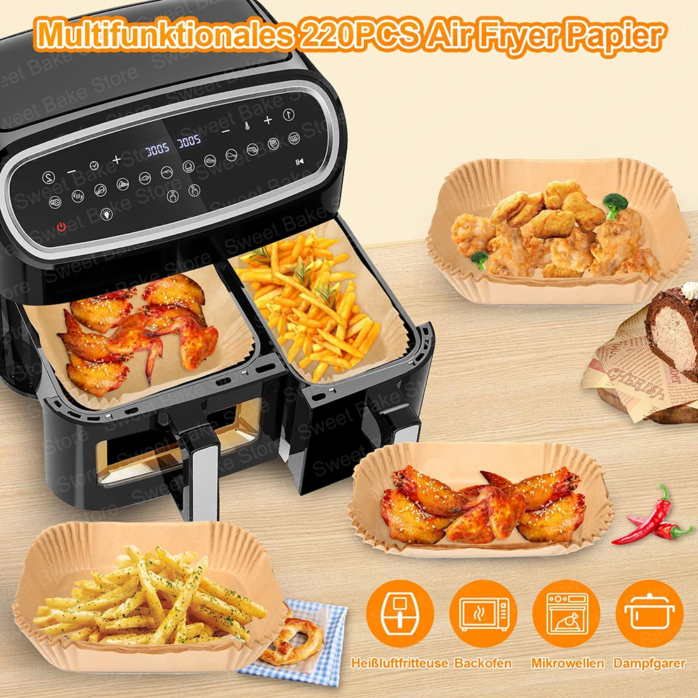 🍃 Résistant à la chaleur – Jusqu’à 220 °C, utilisable dans l’airfryer, le four ou le micro-ondes. Prêt à l’emploi : pas besoin de découper ou plier.