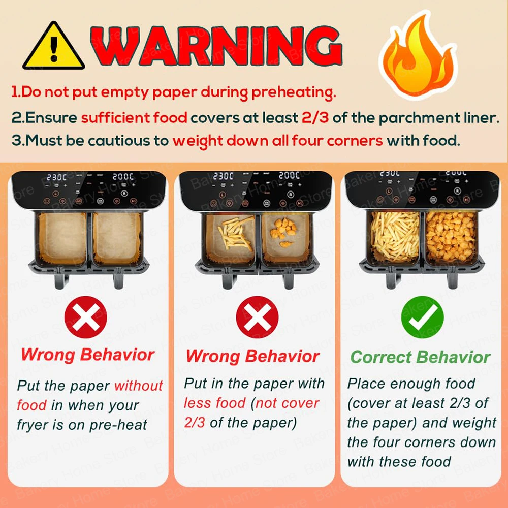 100 Papiers cuissons pour les deux bacs Cosori - Twinfry 10L