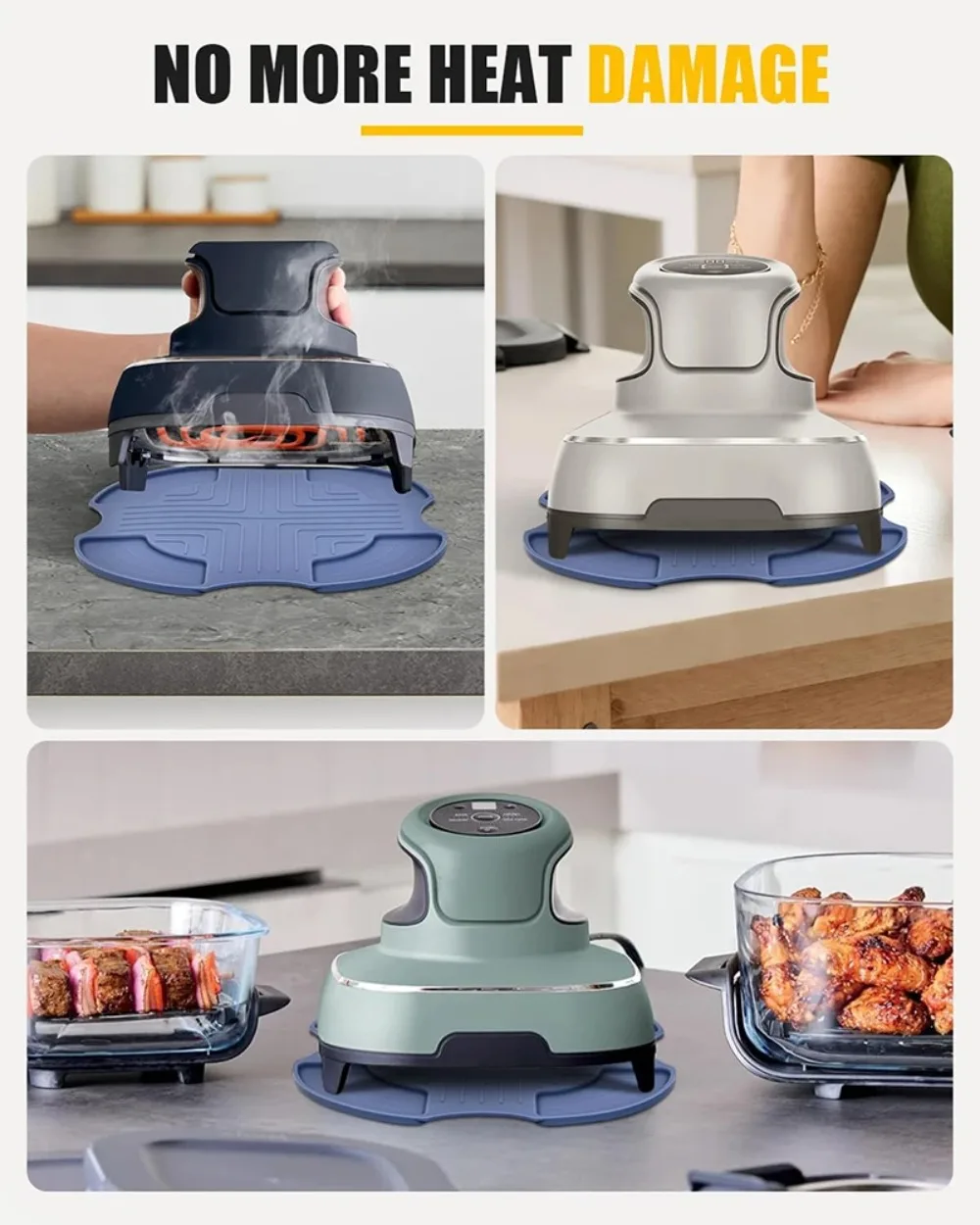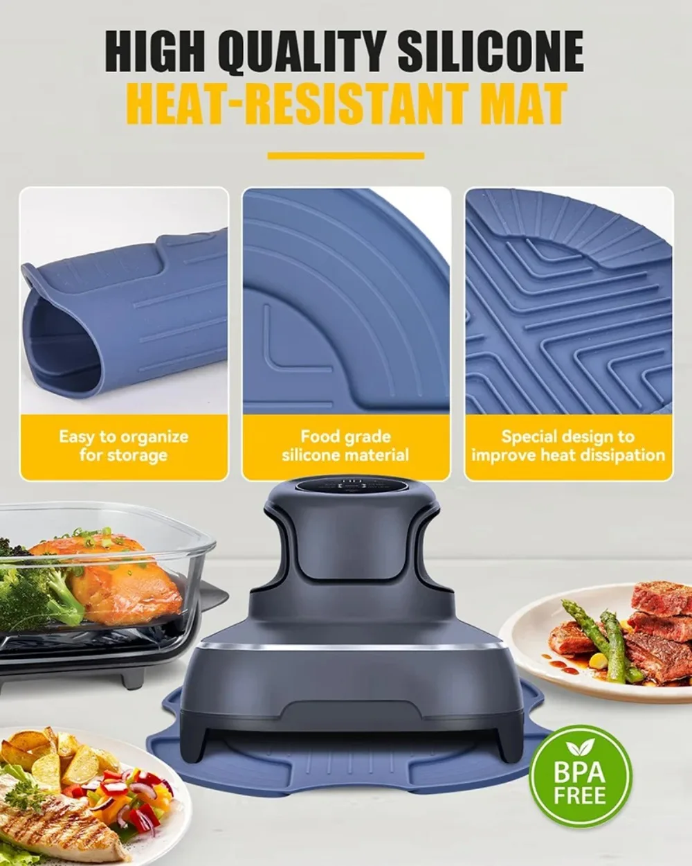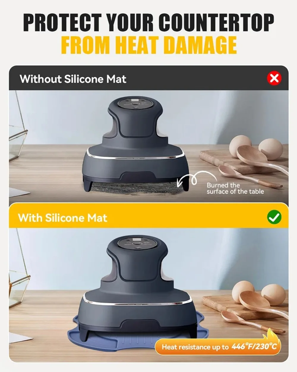 Ce tapis offre une protection fiable contre la chaleur pour vos plans de travail et surfaces de cuisine.